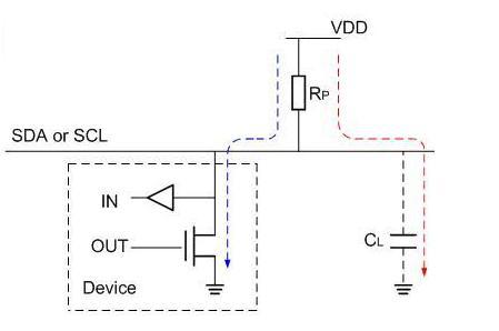 C是Bus capacitanceRp最大值由總線最大容限(Cbmax)決定,Rp最小值由Vio與上拉驅(qū)動(dòng)電流(最大取3mA)決定;于是 Rpmin=5V/3mA≈1.7K(@Vio=5V)或者2.8V/3mA≈1K(@Vio=2.8V)。