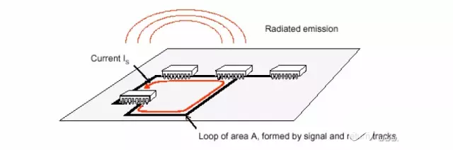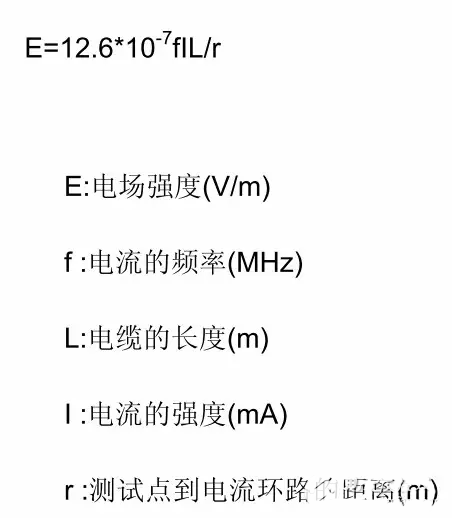 PCB 上有許多信號環(huán)路,由中有差模電流環(huán)也有共模電流環(huán),計算其輻射強(qiáng)度時,可等效為環(huán)天線,輻射強(qiáng)度由下式計算: