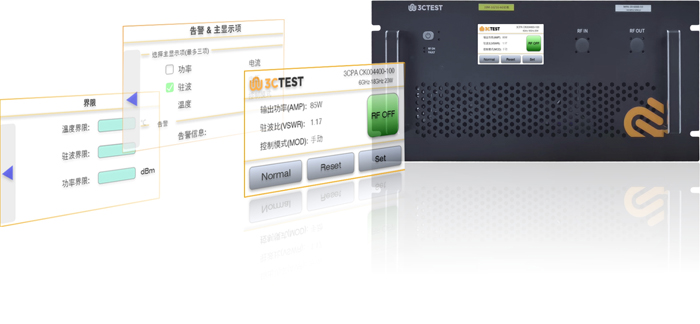 由于測(cè)試環(huán)境及測(cè)試要求的不同,可以對(duì)功率放大器內(nèi)部保護(hù)參數(shù)進(jìn)行修改設(shè)置;同時(shí)在顯示屏上顯示所需要的信息。方便測(cè)試工程師,及時(shí)了解功率放大器當(dāng)前的運(yùn)行情況。
