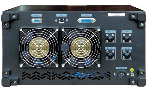 內(nèi)置定向耦合器用監(jiān)測(cè)正向/方向功率,輸出接口類型為N型。為了適應(yīng)各種類型測(cè)試軟件,遠(yuǎn)程通訊接口采用GPIB/LAN/RS232。各型號(hào)設(shè)備根據(jù)輸出功率及頻率要求,信號(hào)輸入/功率輸出接口類型為N型或7/16型。